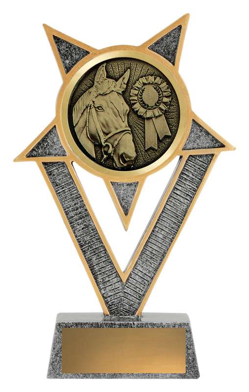 This Antique Gold Lynx Trophy is the perfect theme award for a variety of horse related activities. Featuring a classic wreath and vibrant design, horse trophies are customisable and available in 4 impressive sizes.