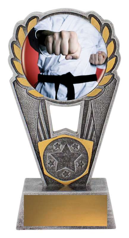 The Peak Series is an innovative set of trophies offering super value for such an impressive size range. An elevated design that features effective generic martial arts theme against vibrant sunray background. Available in 3 sizes.